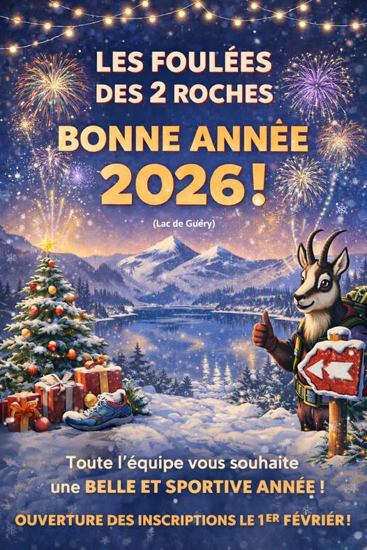 Toute l’association des Foulées des 2 Roches vous adresse ses meilleurs vœux pour cette nouvelle année : santé énergie plaisir et de magnifiques...