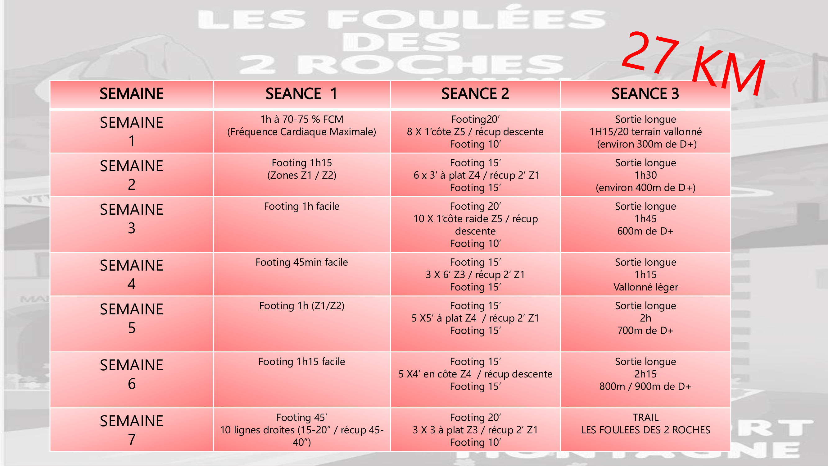 PLAN D'ENTRAINEMENT: 27 KM
